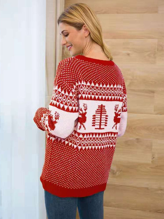 Christmas Element Round Neck Long Sleeve Sweater